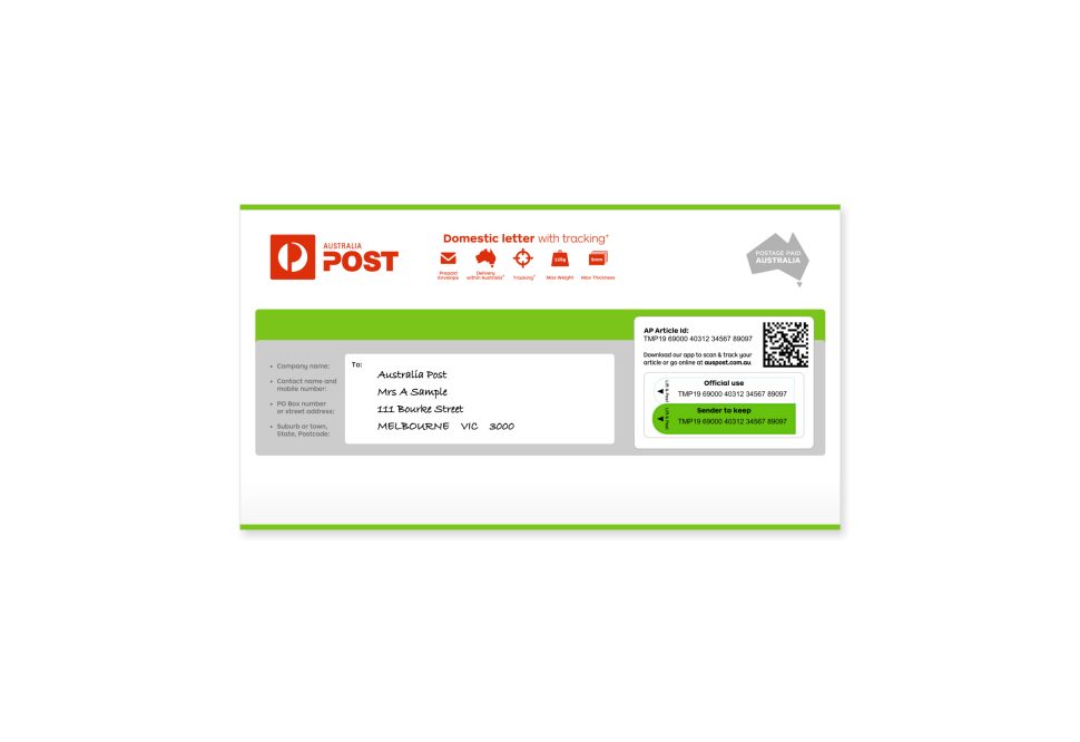 Choose Domestic Letter with Tracking or Registered Post to get proof of posting and tracking. You must lodge your envelope over the counter at a Post Office for proof of posting.